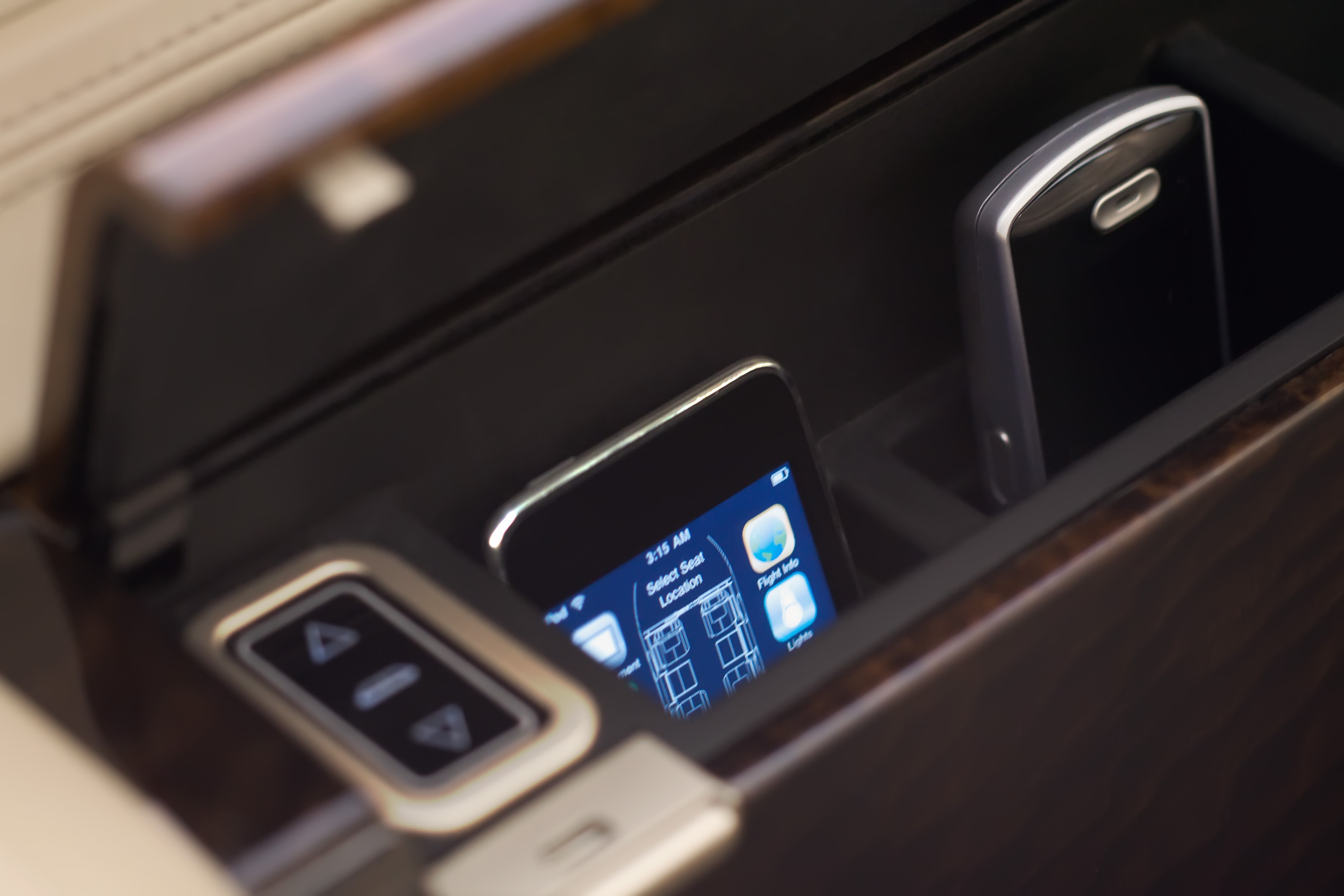 GCMS works in conjunction with the Gulfstream Cabin Control app to provide seamless digital control of the aircraft cabin’s systems. Using an off-the-shelf smart device such as an iPod touch® or iPhone®, passengers can adjust the lighting, temperature, audio/video, flight information (CabinView) and attendant call for their specific seat on the jet.