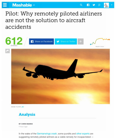 In the wake of several recent airliner losses, talk in the media once again turns to the futuristic concept of remotely piloted passenger jets.