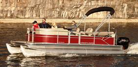 Owners can choose from three exterior colors for their Sprint pontoon: Black Metallic, Maroon Red or Slate Blue. Optional seating and flooring upgrades, audio package and ski tow further personalize the pontoon. Add a skin kit with lifting strakes to up the performance ante.