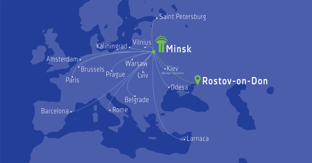 From/to Rostov-On-Don: Amsterdam, Barcelona, Paris, Brussels, Prague, Rome, Kaliningrad, Belgrade, Lviv, Warsaw, Vilnius, Larnaca, Odesa, Kiev, Saint Petersburg.