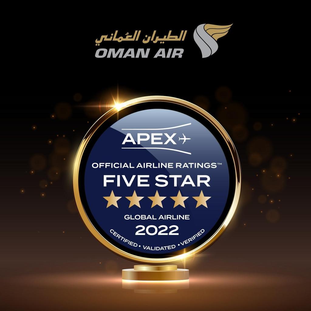 Oman Air, the national airline of the Sultanate of Oman, has been awarded a Five-Star rating in the Major Airline category by the Airline Passenger Experience Association (APEX). The award was announced and presented to Oman Air on Wednesday, 1 December 2021, in Long Beach, California at the APEX/IFSA Awards, the industry’s first major in-person event of the year. This is the second consecutive year that Oman Air has received the Five-Star Major Airline award.